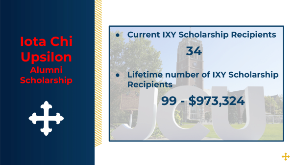 The Iota Chi Upsilon (IXY) Scholarship was established in 1984 to benefit undergraduate students in good academic standing at John Carroll University.